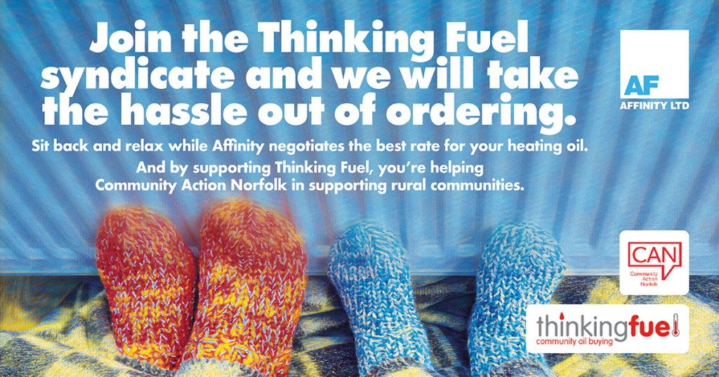 Thinking Fuel is the oil buying scheme run by Community Action Norfolk (CAN) in partnership with AF Affinity. The aim is to provide communities with cheaper fuel and any proceeds help support CAN’s community development services. The scheme works on a community basis which means anyone in the local community can join as an individual member.